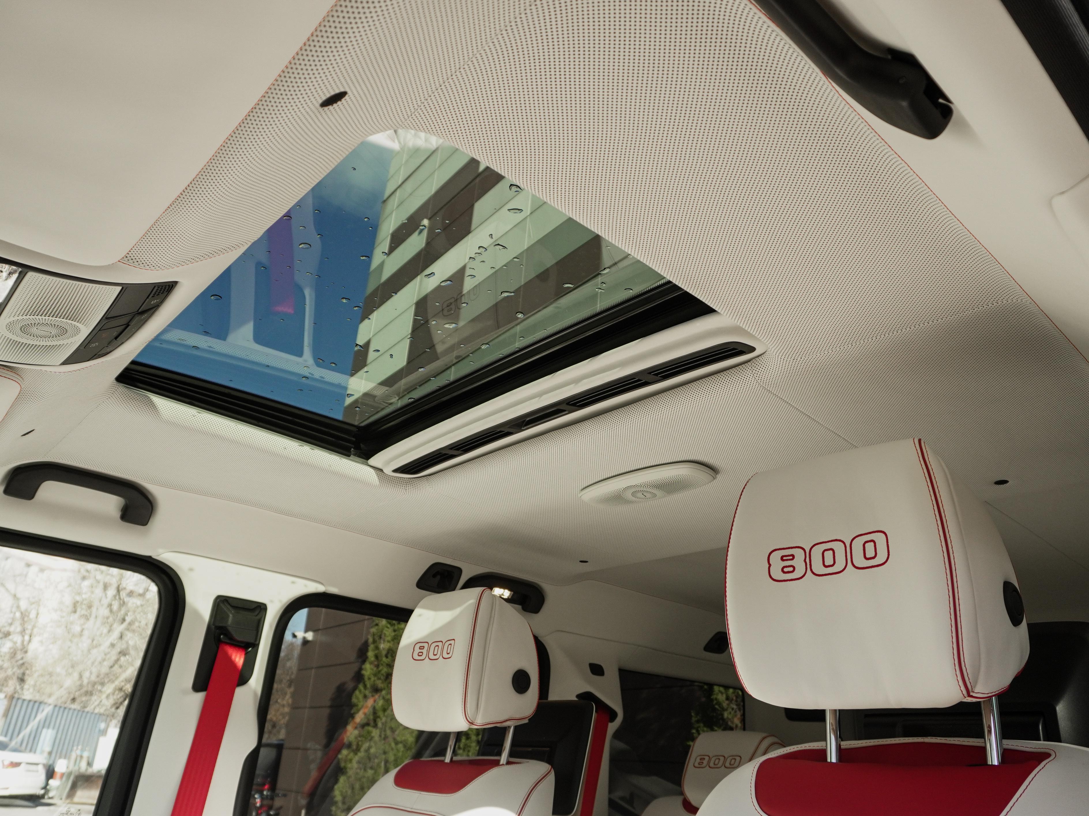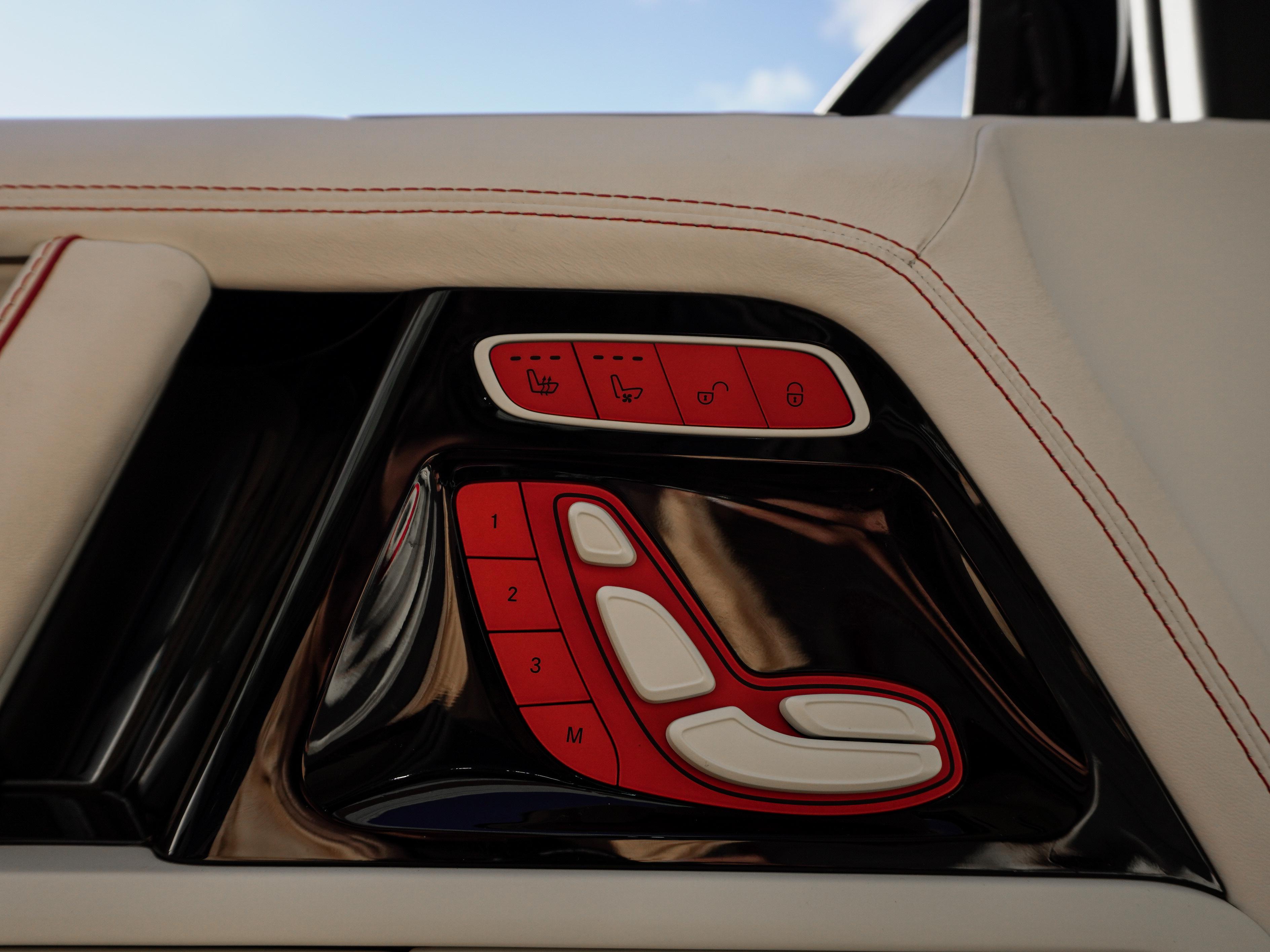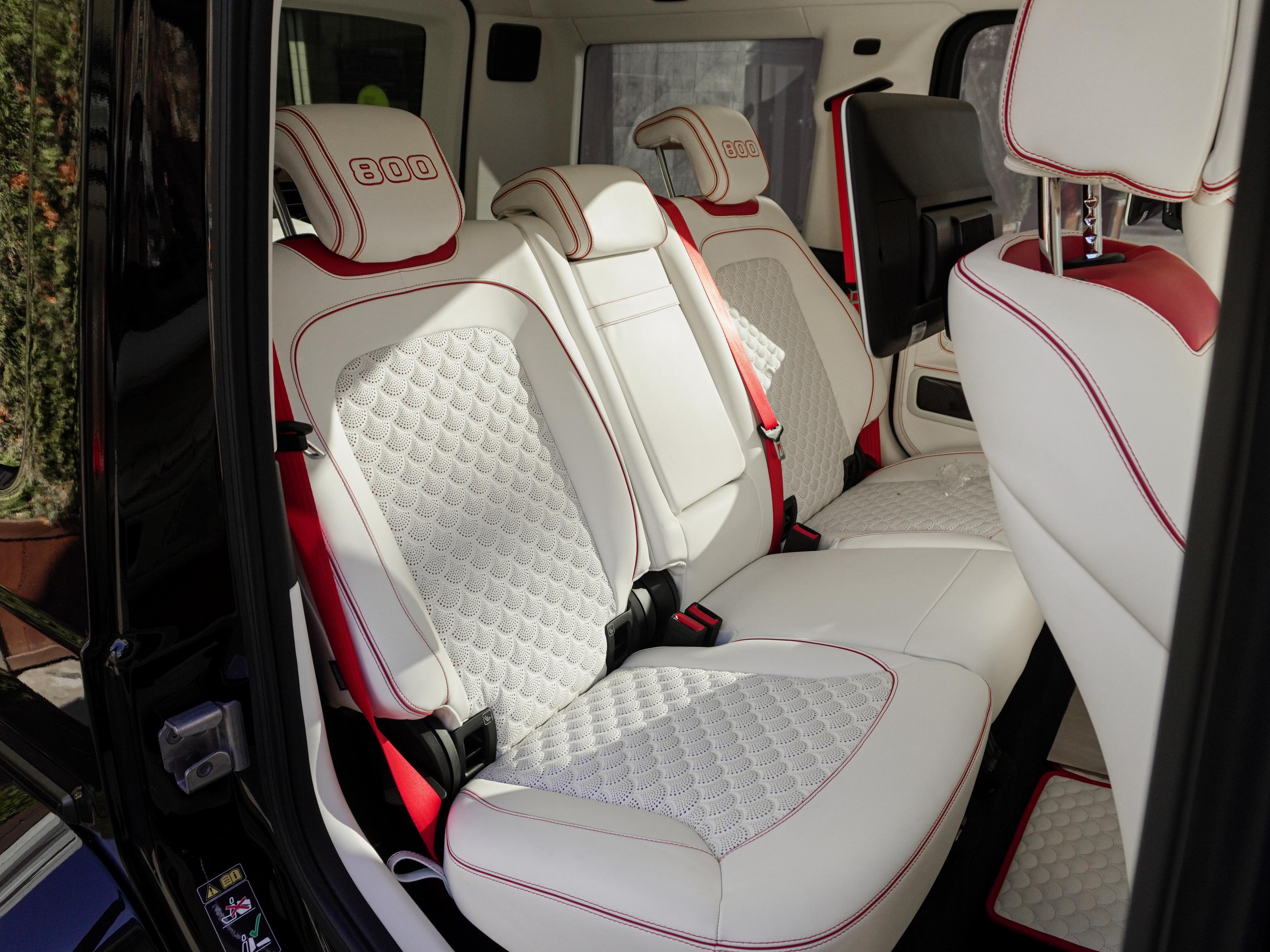 Интерьер: Внутри вас встречает роскошный контраст — салон, выполненный из нежнейшей кожи в цвете Porcelain/Beige. Мастера Brabus продумали каждую деталь: от перфорации сидений до эксклюзивных ковриков. Бежевый интерьер визуально расширяет пространство, создавая атмосферу частного бизнес-джета, а вставки из темного дерева или карбона завершают этот премиальный образ.