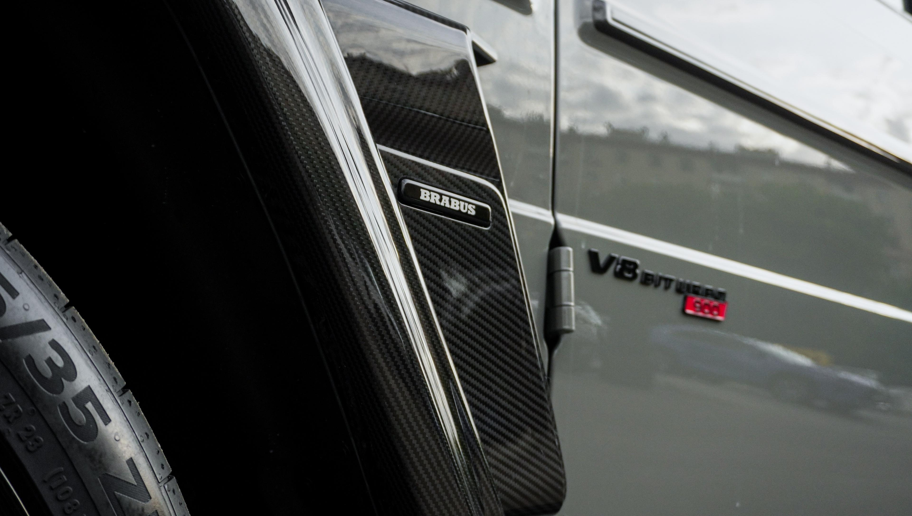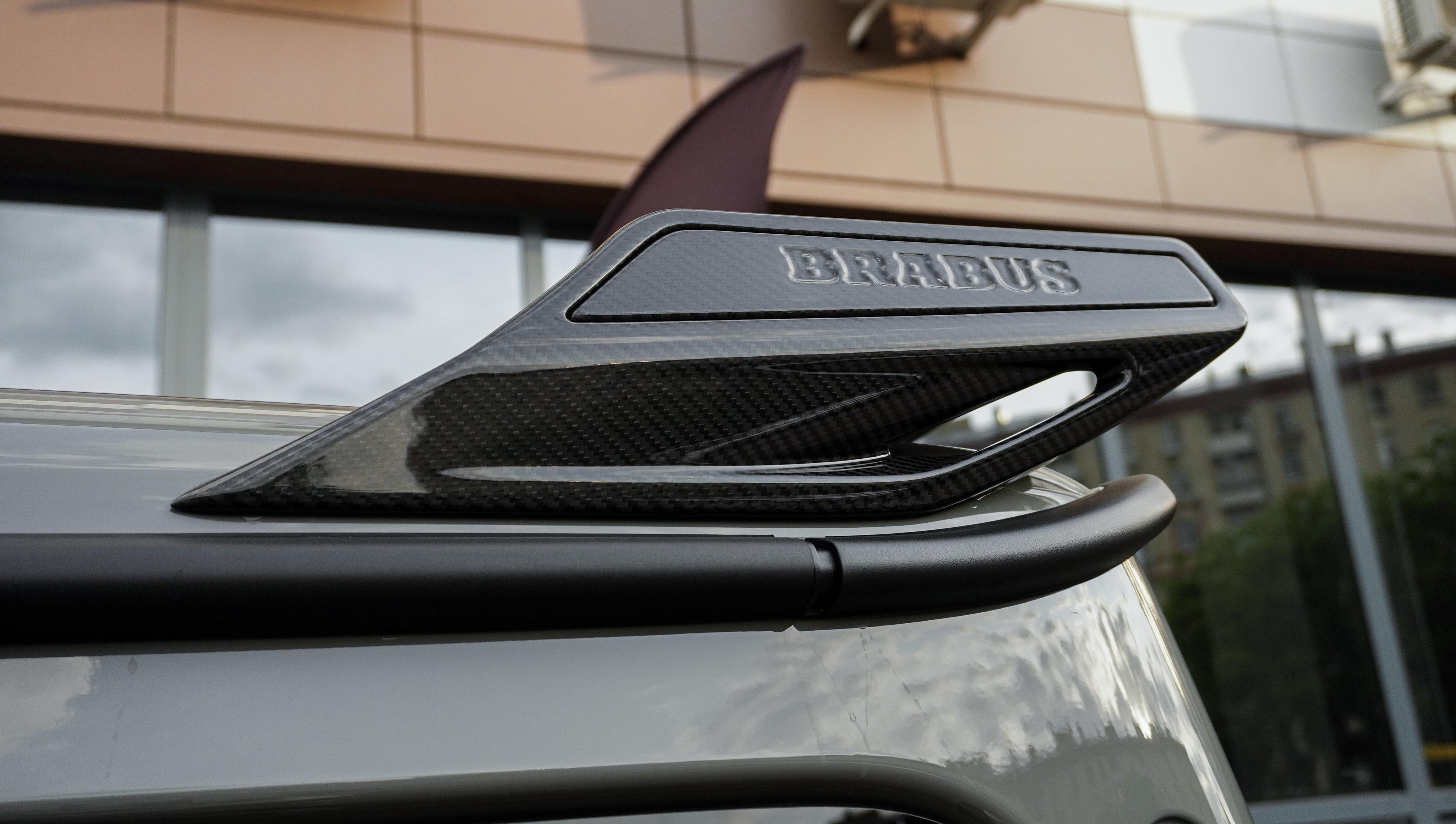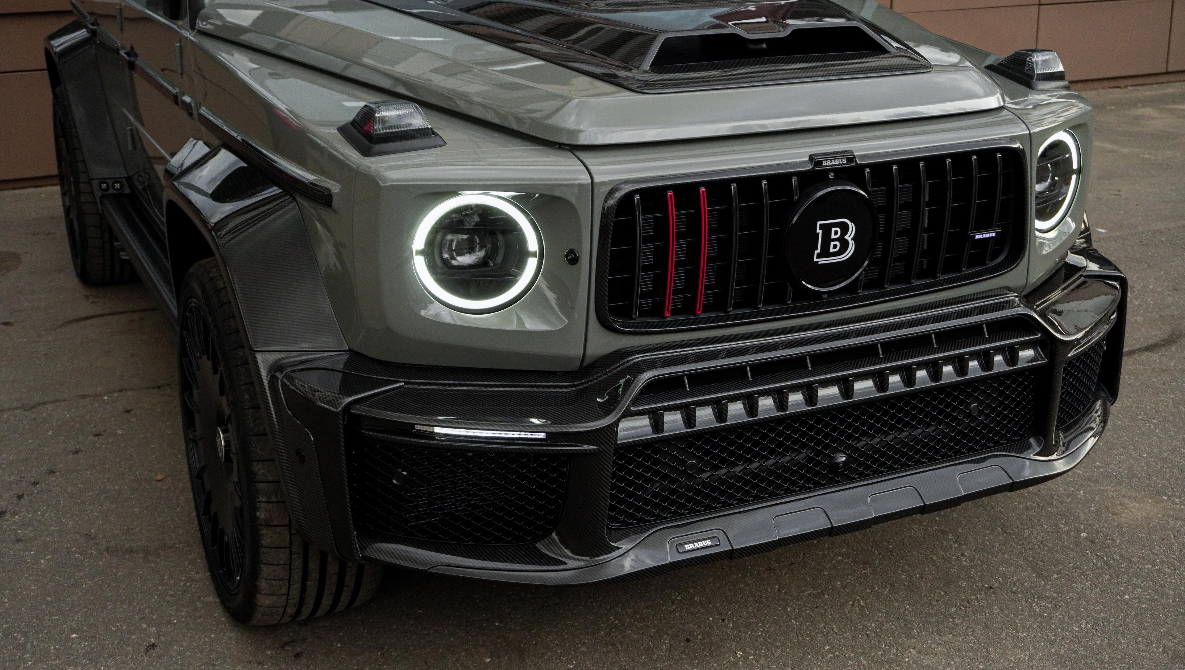 Экстерьер: Кузов облачен в фирменный аэродинамический обвес Brabus Widestar, который делает силуэт «Гелендвагена» шире и агрессивнее. Элементы из видимого углеродного волокна (карбона) на капоте, решетке радиатора и спойлере подчеркивают технологичность проекта. Завершают образ кованые диски Brabus Monoblock, разработанные специально для высоких нагрузок.