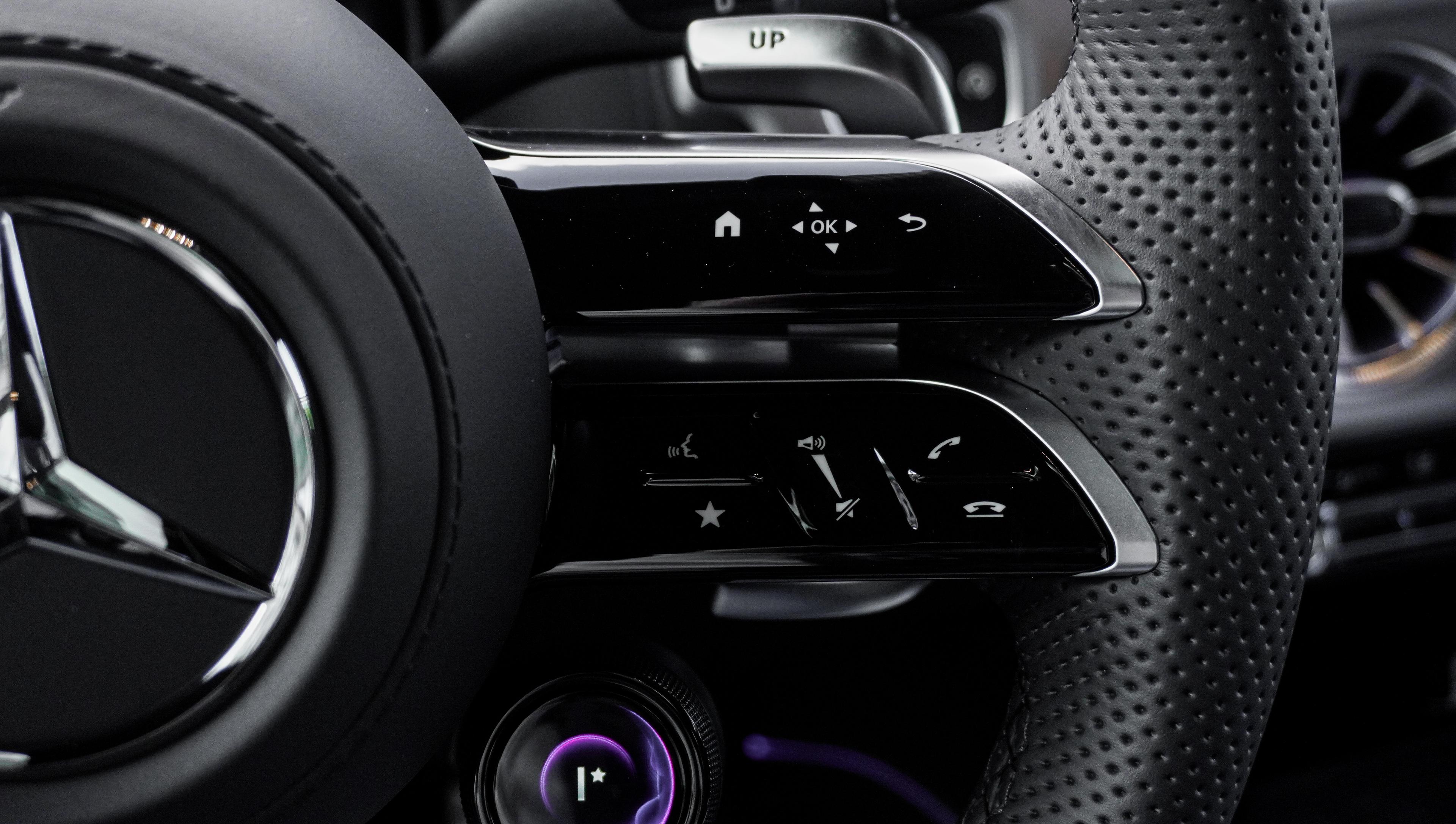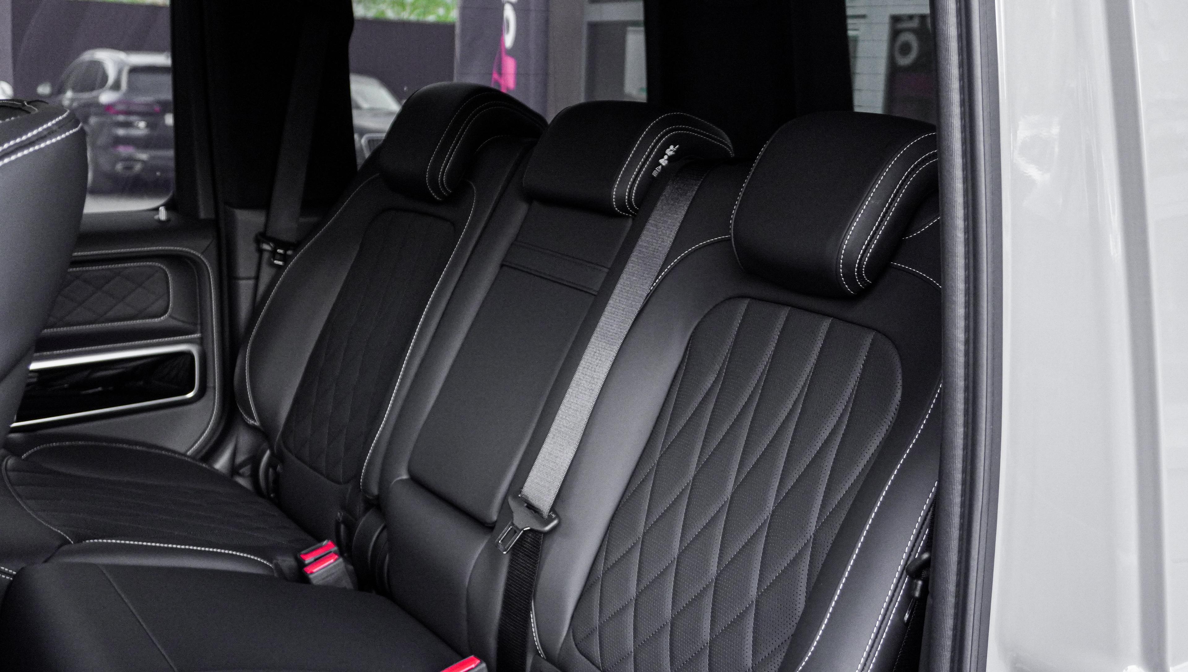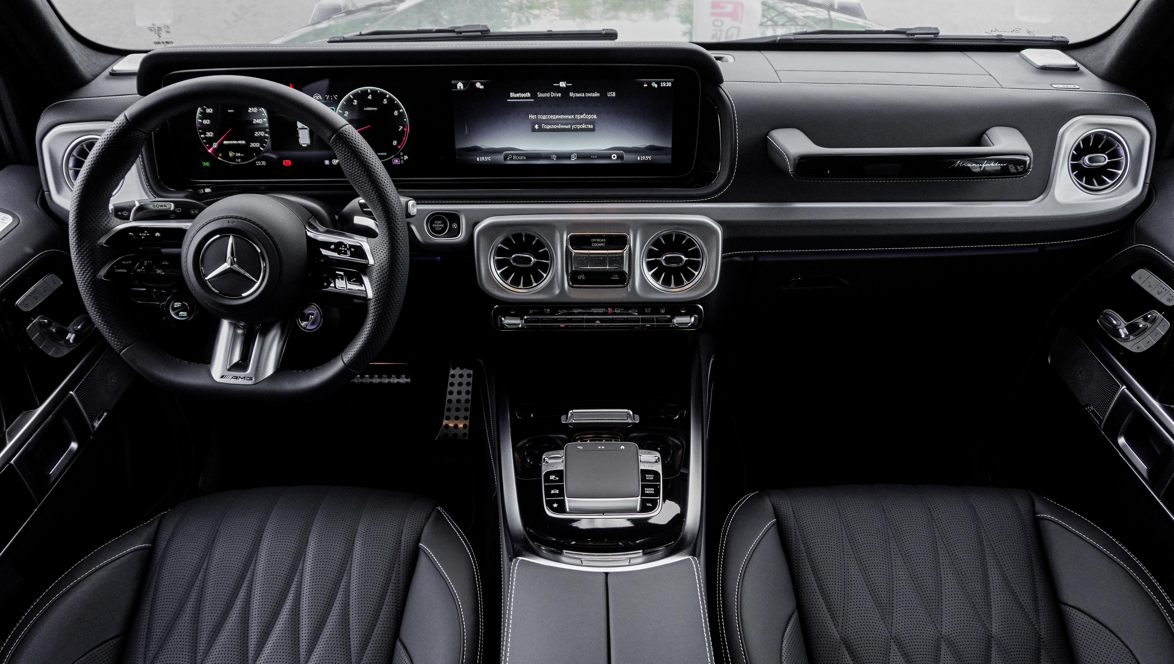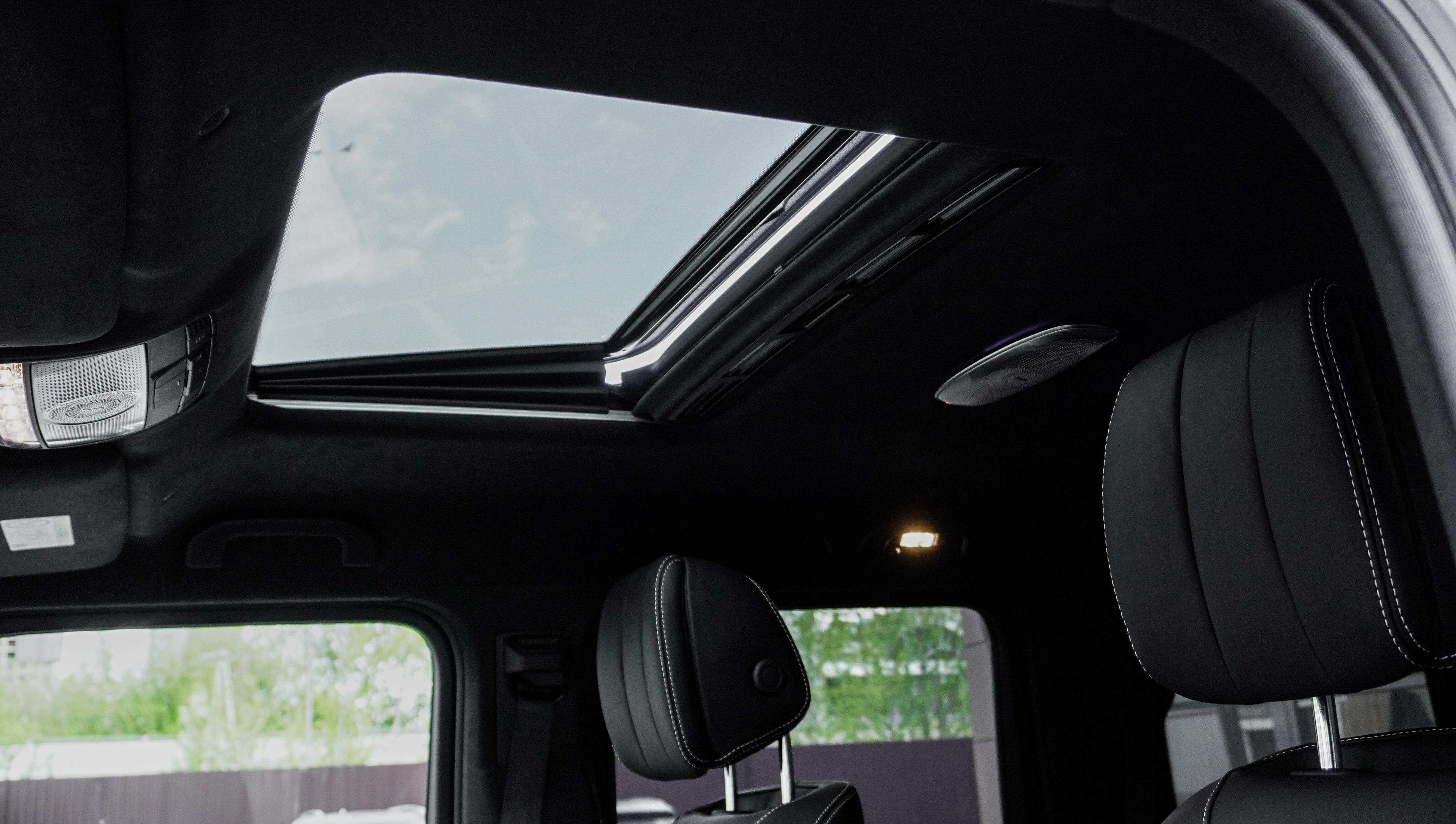 Интерьер: Классическое и самое востребованное сочетание — глубокий черный салон, выполненный из премиальной кожи с фирменной прострочкой Brabus. Детали интерьера дополнены карбоновыми вставками и алюминиевыми педалями, создавая атмосферу роскоши и спортивного азарта.