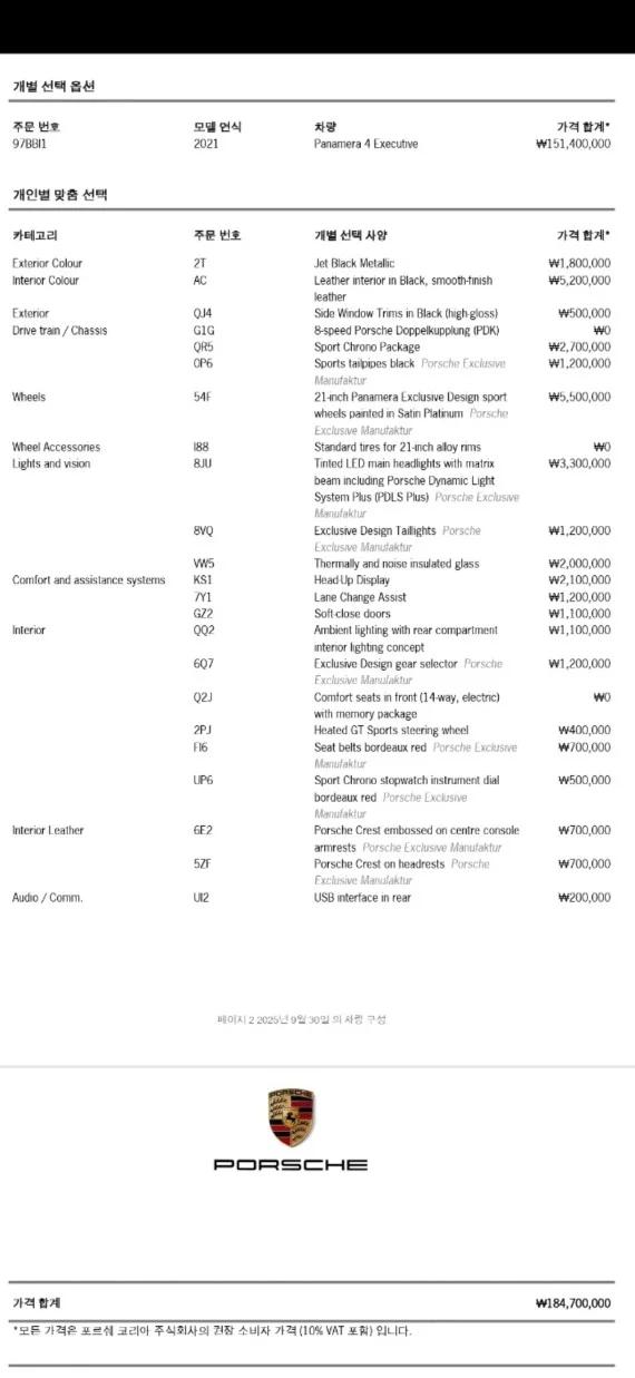 Porsche PANAMERA 2.9 AWD Executive, 2021 г. 74016 км. 2.9 PDK (330 л.с.) робот — под заказ из Кореи